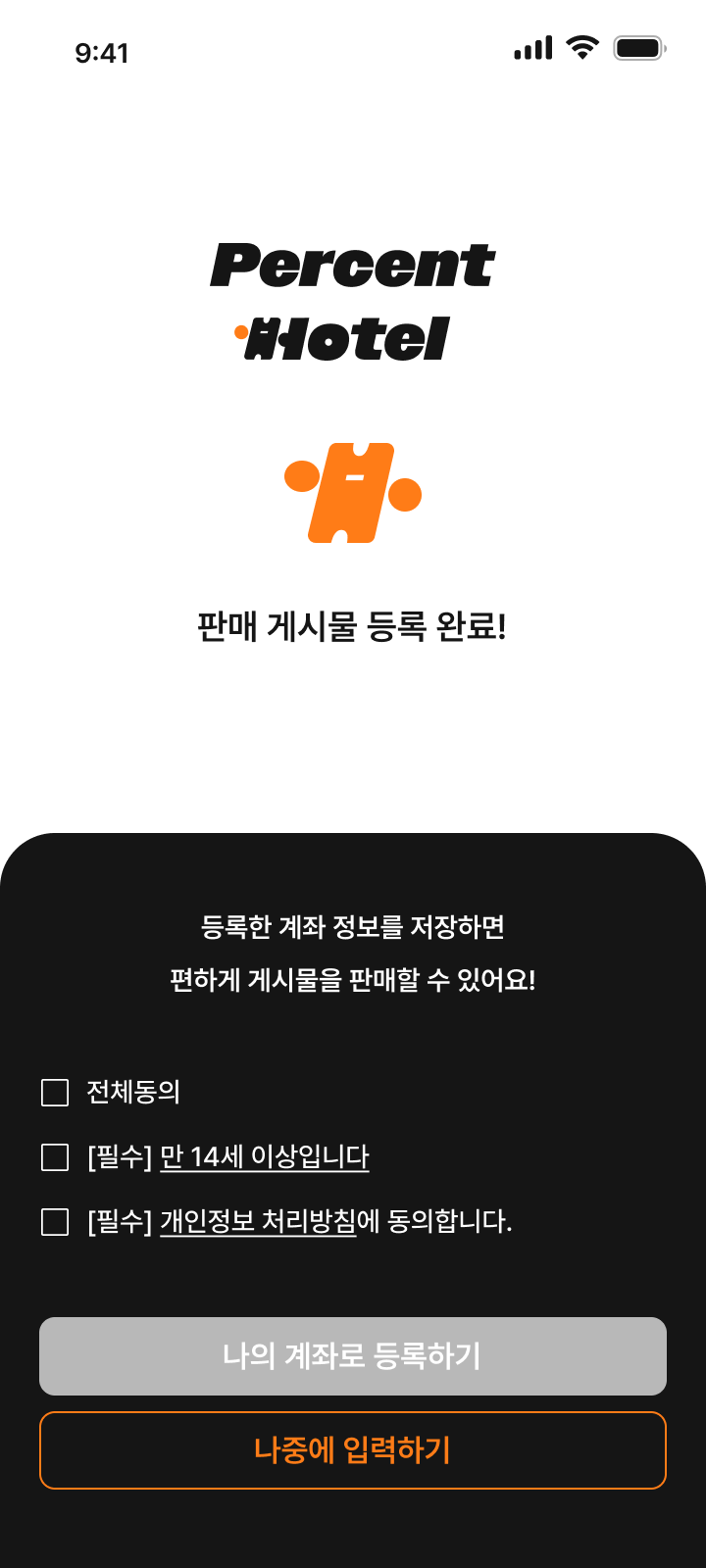 퍼센트호텔은 야놀자에서 구매한 숙소 중 무료취소가 불가능한 것을 빠르게 중고거래하는 플랫폼이다.
