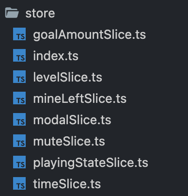 이 외에도 남은 열린 타일 갯수, 남은 마인 갯수, 모달 on/off 여부, 음소거 여부, 시간 등등 많은 전역상태들이 존재한다.