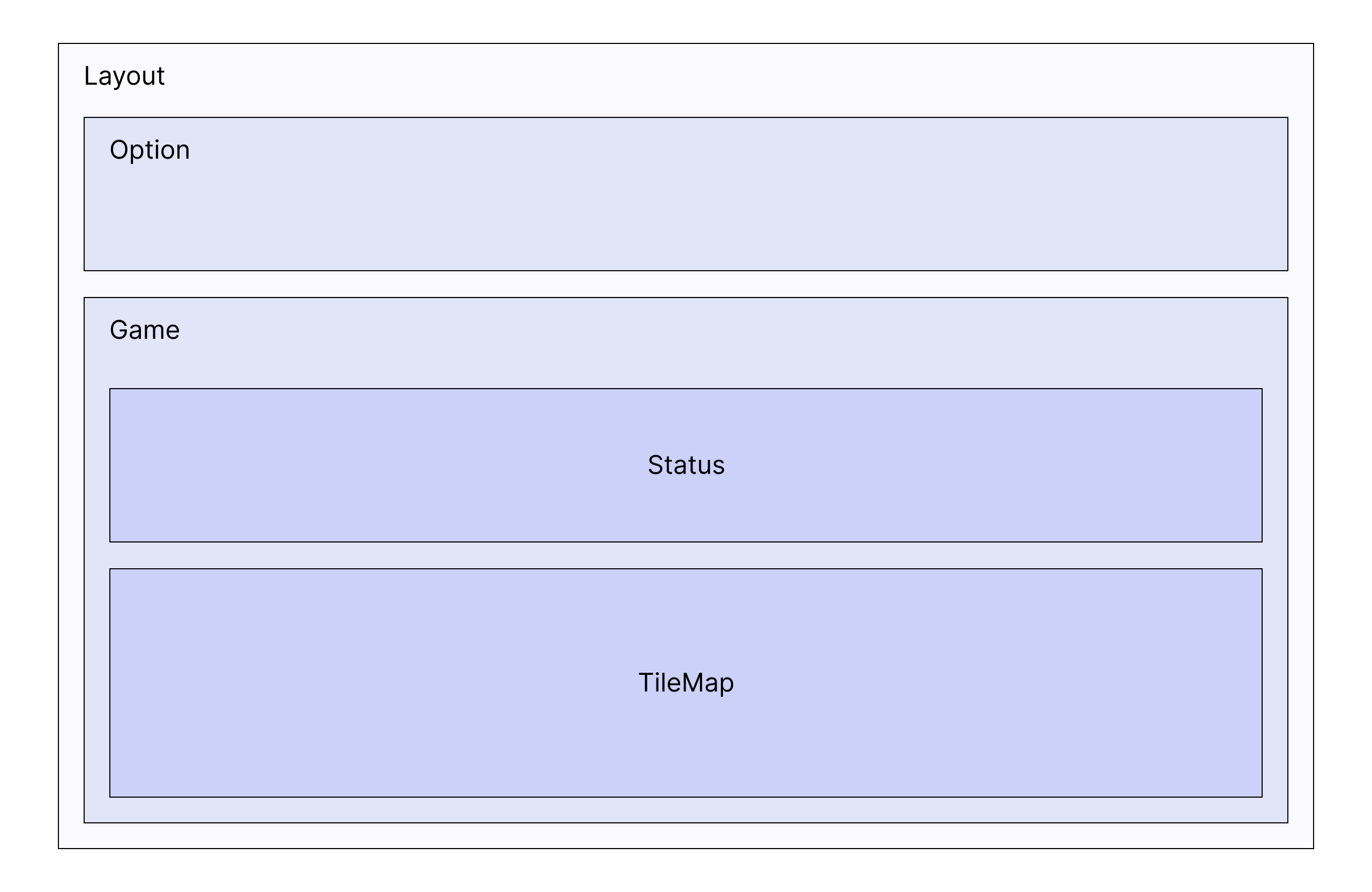 Layout은 게임창 전체 컨테이너를 flex 중앙 정렬을 해놓은 구조이다.
