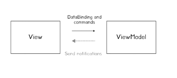 - 뷰모델은 뷰가 데이터바인딩할 수 있는 속성과 명령을 구현하고 뷰에게 알린다.