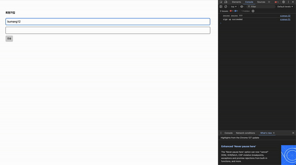 2. '비밀번호란'과 '비밀번호 확인'란이 같아야 백엔드 요청하기