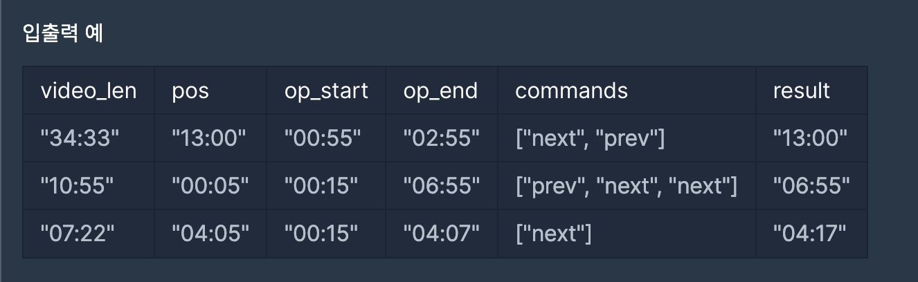 [PCCP 코딩테스트 기출문제] 1번 / 동영상 재생기 (Javascript 풀이) 본문