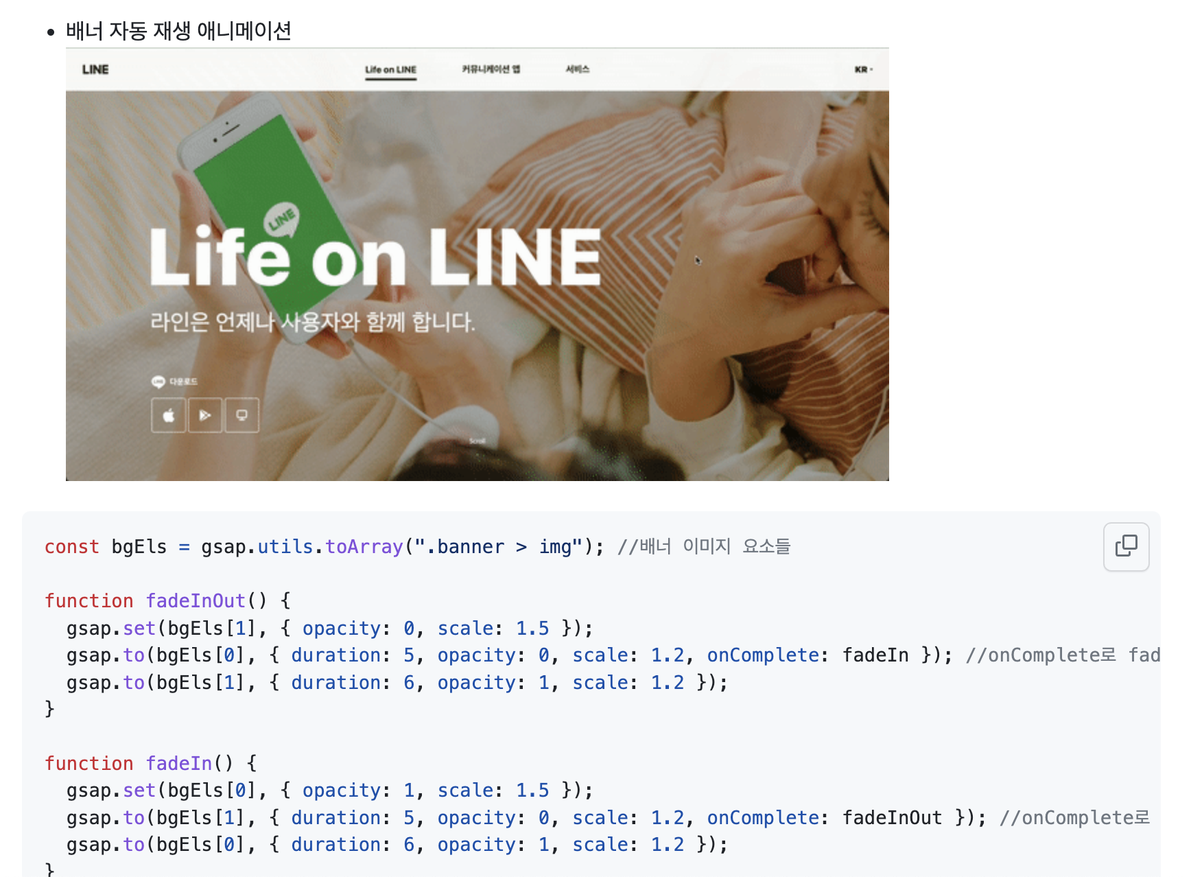 2. 외부 라이브러리로 복잡한 애니메이션을 처음 구현해보았다. (배너 애니메이션, 스크롤에 따른 요소 크기 변화 ・ 상태 변화 등..)
